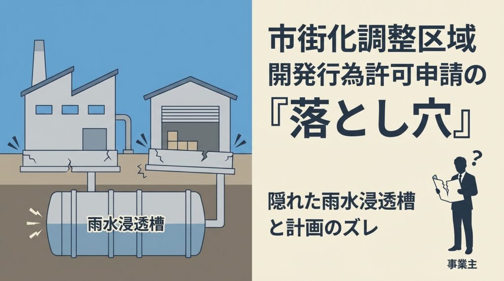 今回は、市街化調整区域で「自己の業務の用に供するもの」を建築する際の、雨水浸透槽設置に関する注意点について解説しました。